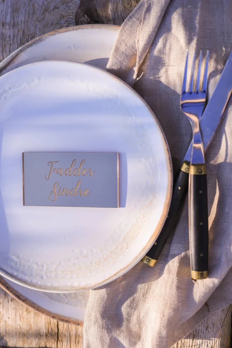 Vi produserer bordkort med alle dine gjesters navn, og de vil gjøre borddekorasjonen både festlig og unik.