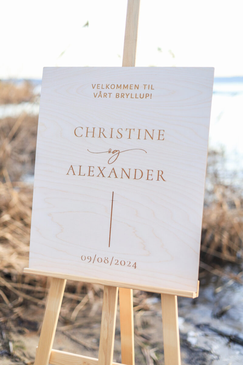 Et elegant bryllupsskilt gir en varm og gjennomført ramme rundt dagen dere har planlagt med så mye omtanke. Det viser at dette ikke bare er en fest – men starten på et nytt kapittel i deres historie.