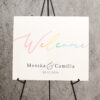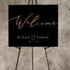 Personlig velkomstskilt til bryllup – regnbuedesign