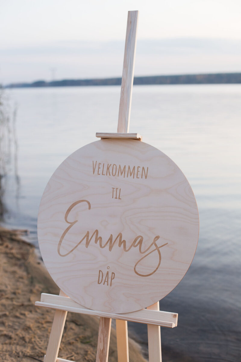 Dåpsdagen starter allerede idet gjestene ankommer. Et personlig velkomstskilt til dåp skaper den første stemningen – og gir en varm og rolig start på en helt spesiell dag.